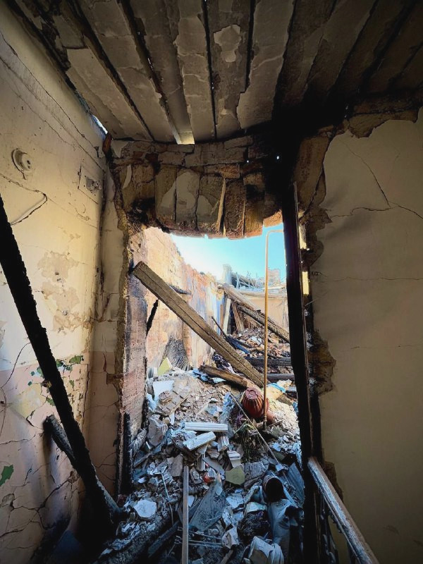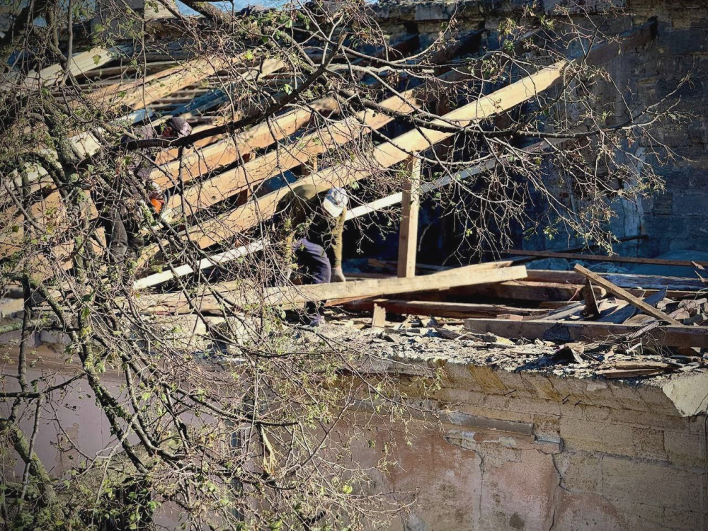 В настоящее время проводятся аварийные работы по восстановлению целостности кровли, кроме наиболее поврежденных участков зданий, где верхние этажи практически разрушены.