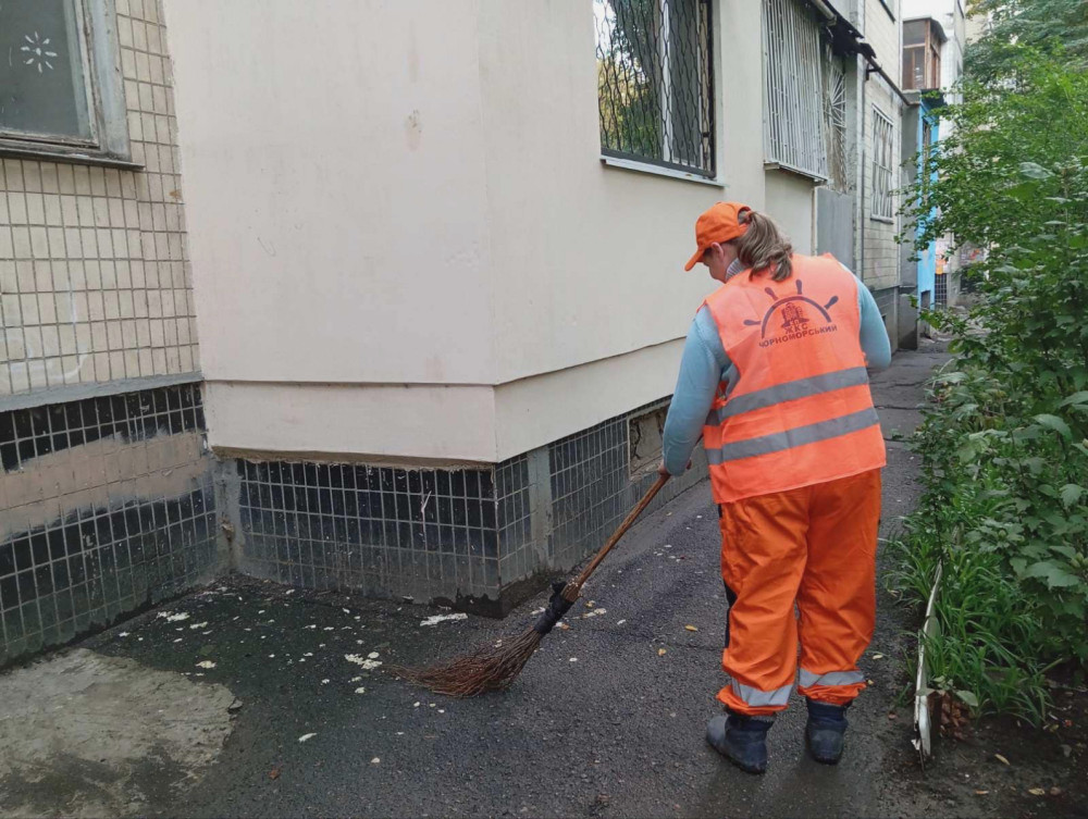 Дважды в день уборщики проводят работы по очистке территорий, включая подметание, очистку мусорных урн и мытье мусорных контейнеров.