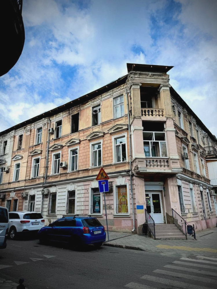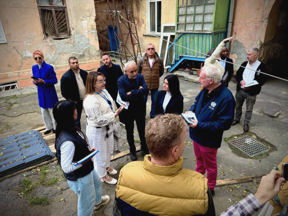 16 октября делегация ООН посетила улицу Софиевскую, 6, где благодаря сотрудничеству благотворительных организаций и коммунальных служб проводятся аварийные работы на крыше жилого дома.