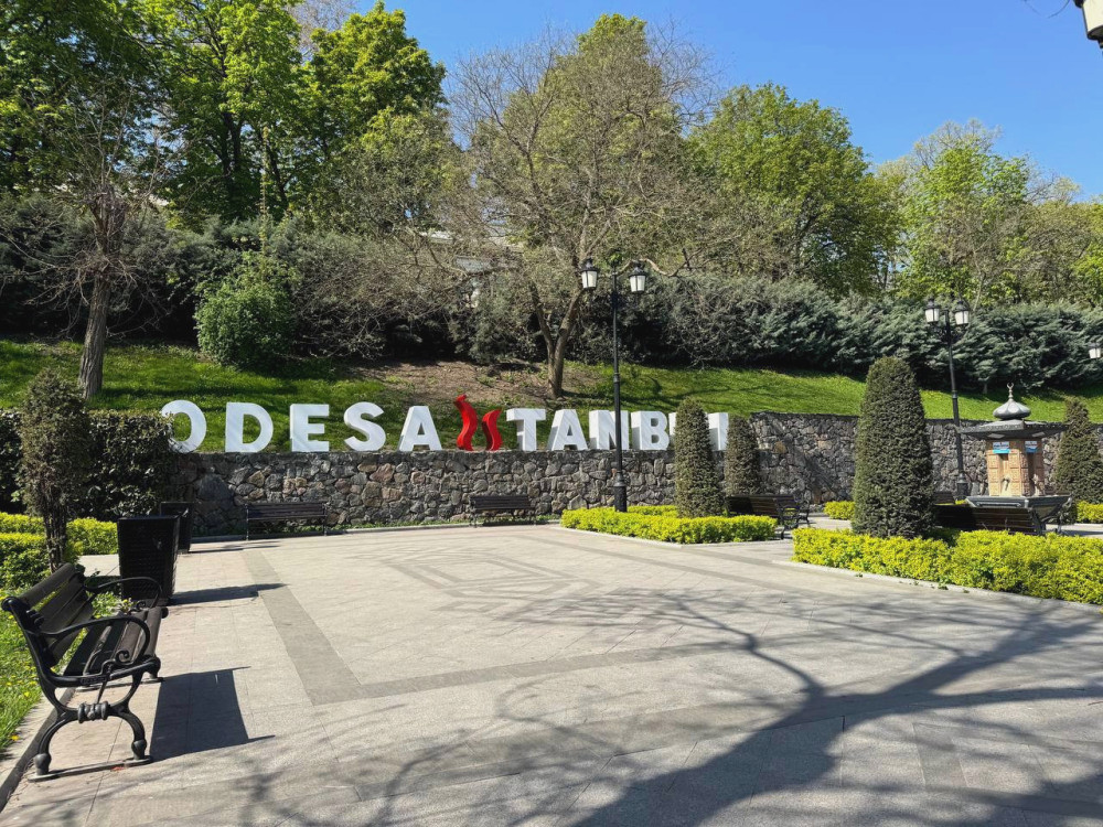 В Стамбульском парке специалисты обновляют скамейки и мусорные урны, а также восстанавливают таблички на фонтане с питьевой водой.
