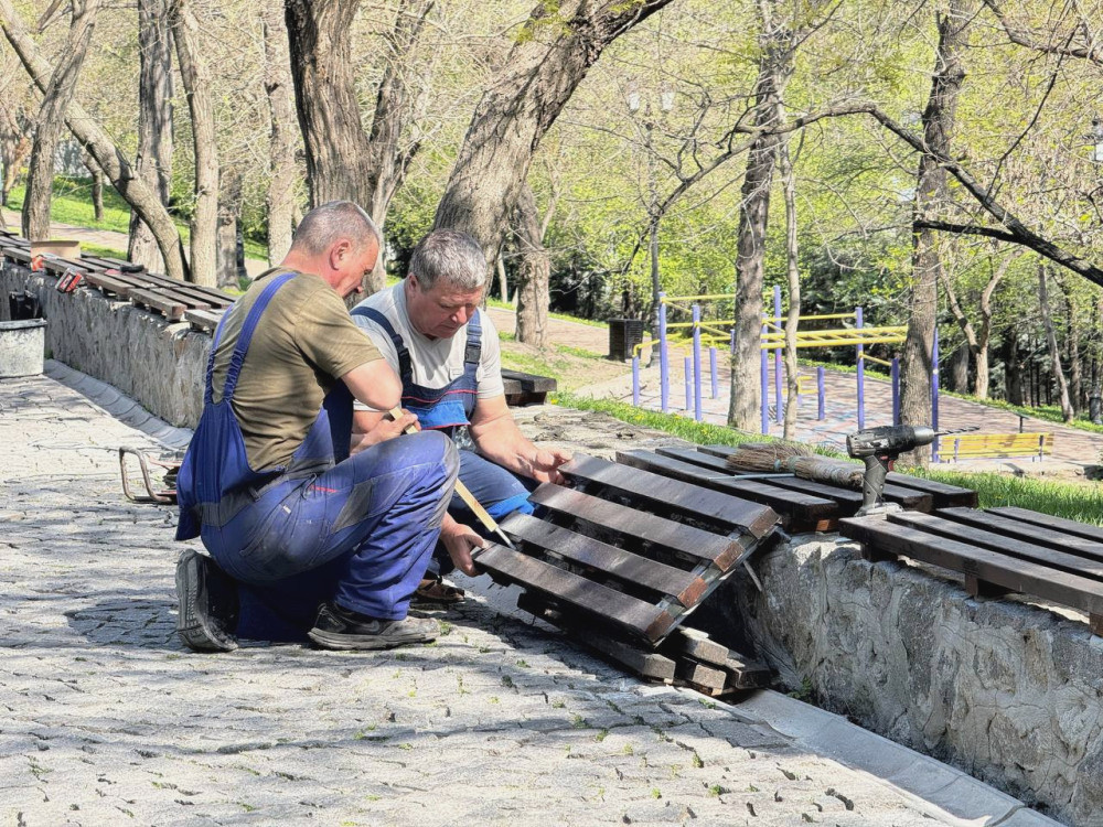 Озеленители поддерживают санитарное состояние зеленых территорий, а с приближением лета планируют украсить парк яркими летними цветами.