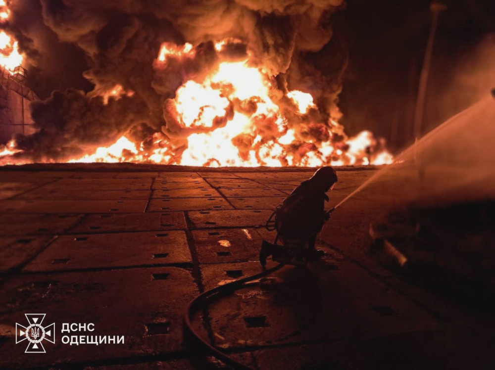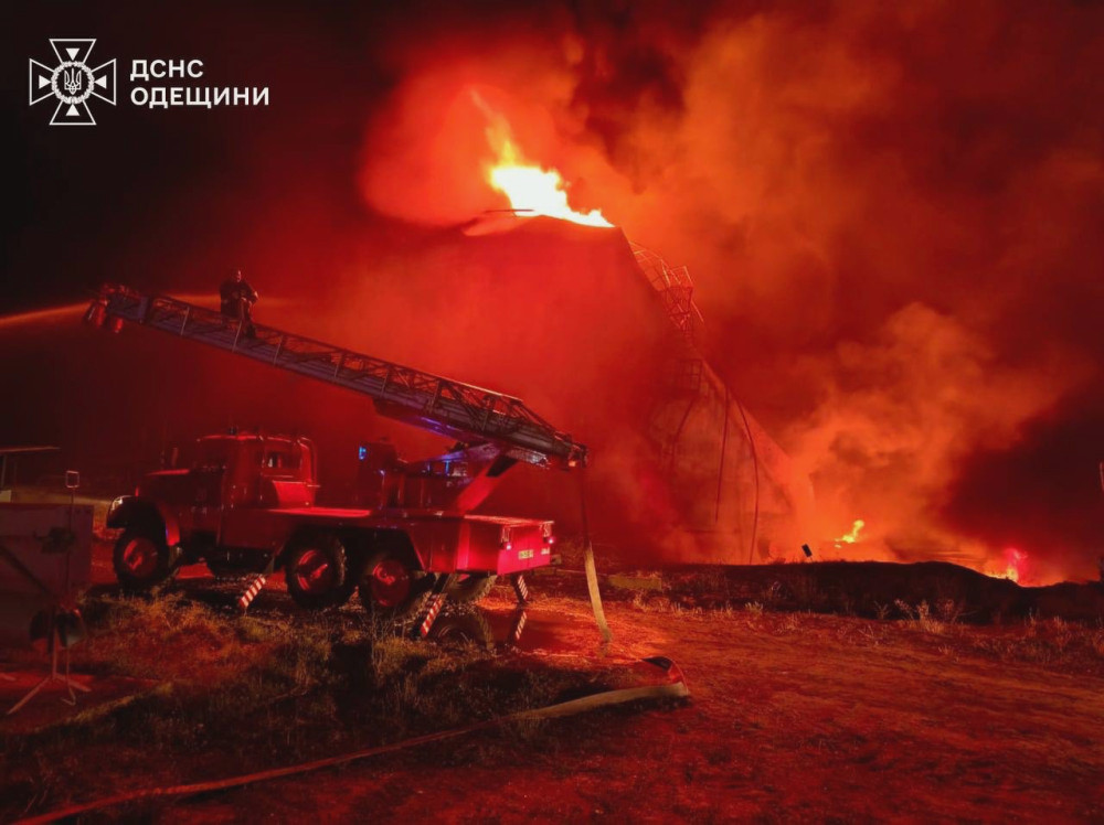 Россия снова осуществила массовую атаку на Одесскую область с использованием ударных беспилотников. В результате удара вспыхнул крупный пожар на объекте энергетической инфраструктуры.